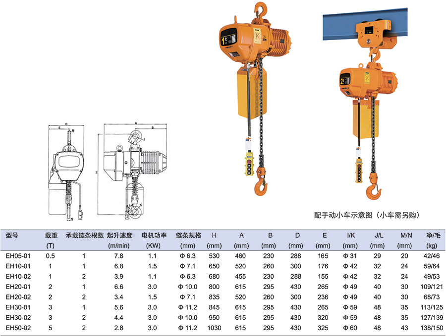 ● 標準起升高度為3米,其它高度可定制。