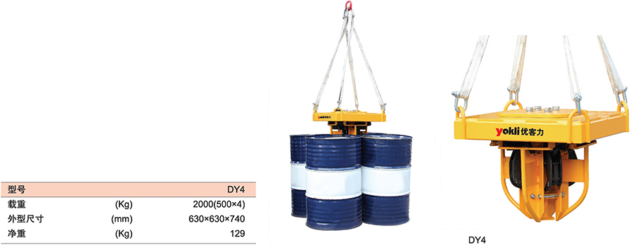 ● 一次性搬運(yùn)四個(gè)油桶,僅用于有行車與有吊運(yùn)設(shè)備的場(chǎng)。